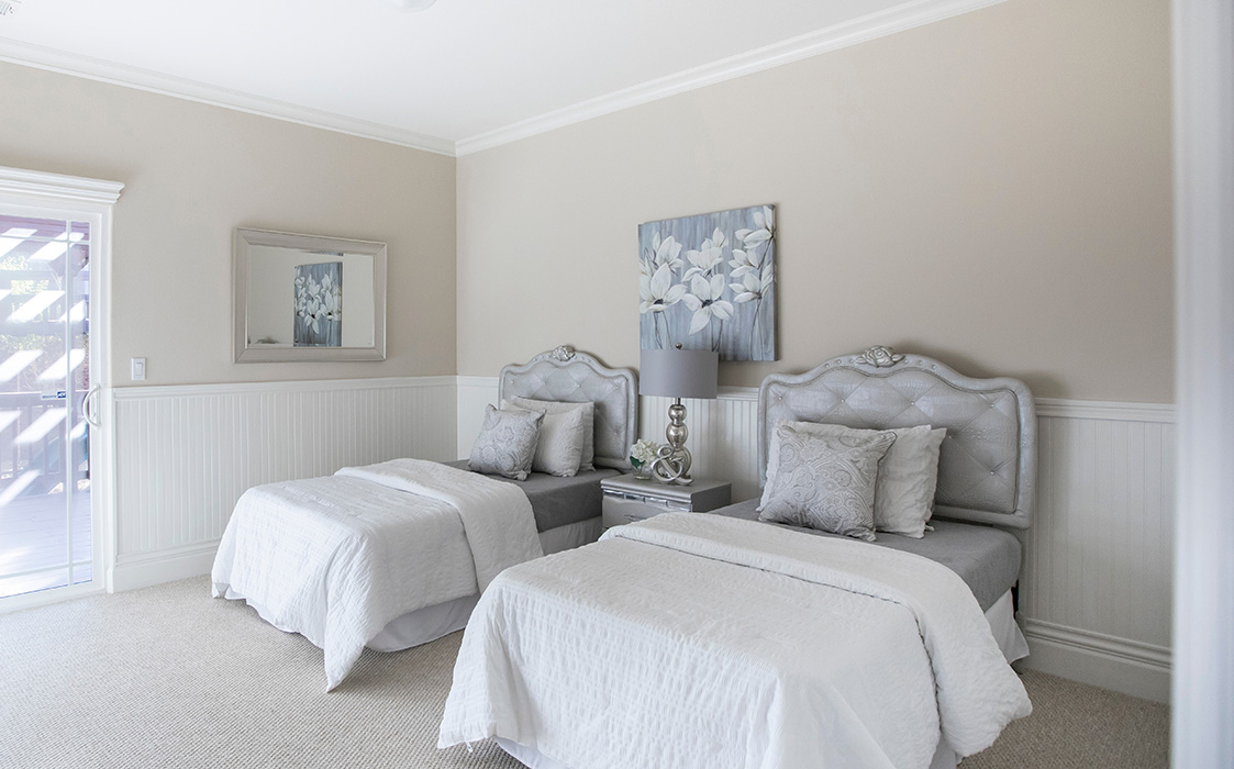Pleasant-Villa features two hotel-like bedrooms with private showers, a spacious living room with a home theater system, two fully equipped works tations, a bar, a kitchen, and a garden with a pool. Everything you need to work efficiently and unwind in style.
